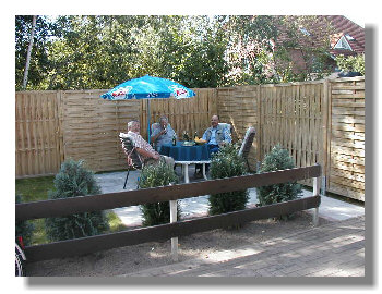 Die lauschige Terrasse lädt nicht nur zu einem gemütlichen Beisammensein ein. Hier finden Sie auch Gelegenheit für Ihr persönliches Barbecue.