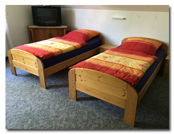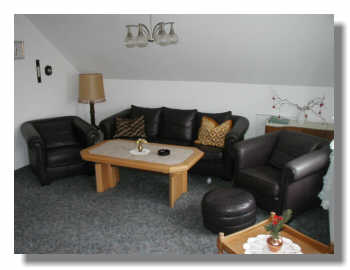 Im Wohnbereich finden Sie neben der gemütlichen Sitzecke auch Fernseher mit DVB-T-Receiver sowie zwei separaten Betten.